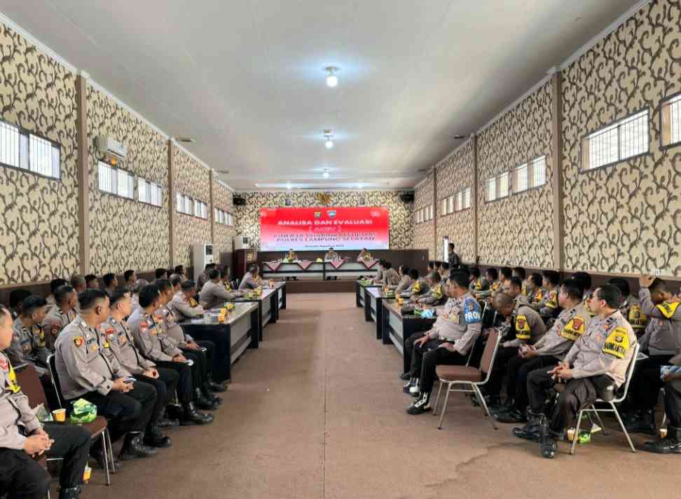 TARING.ID – Kapolres Lampung Selatan AKBP Toni Kasmiri memberikan pengarahan kepada seluruh Bhabinkamtibmas di Aula GWL Mapolres Lampung Selatan, Kamis, 28 Agustus 2025.