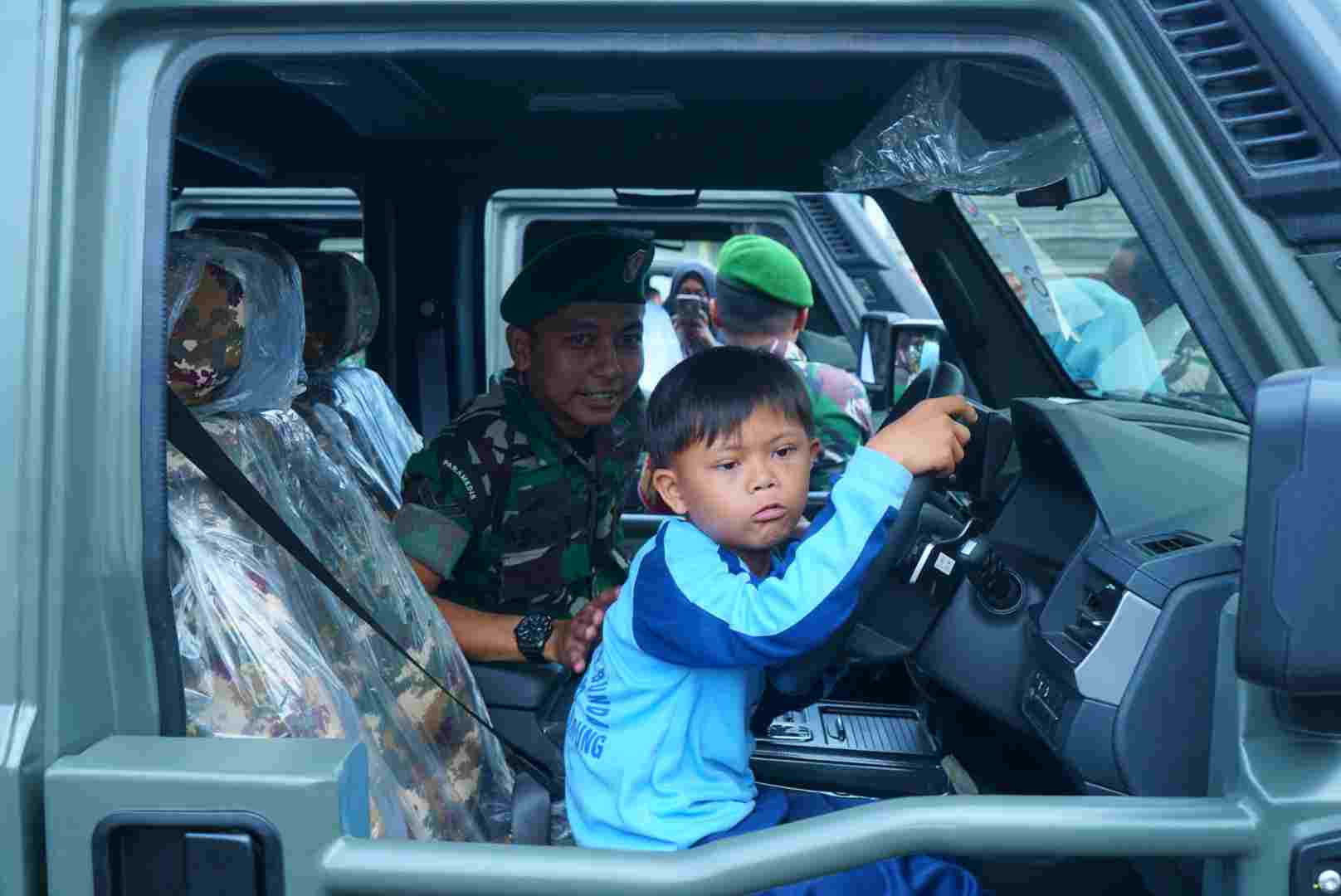 Dengan mata berbinar, mereka melambaikan tangan ke para Tentara Nasional Indonesia (TNI) yang sedang bernyanyi sembari menepuk tangan seraya menyambut tamu yang sangat istimewa.
