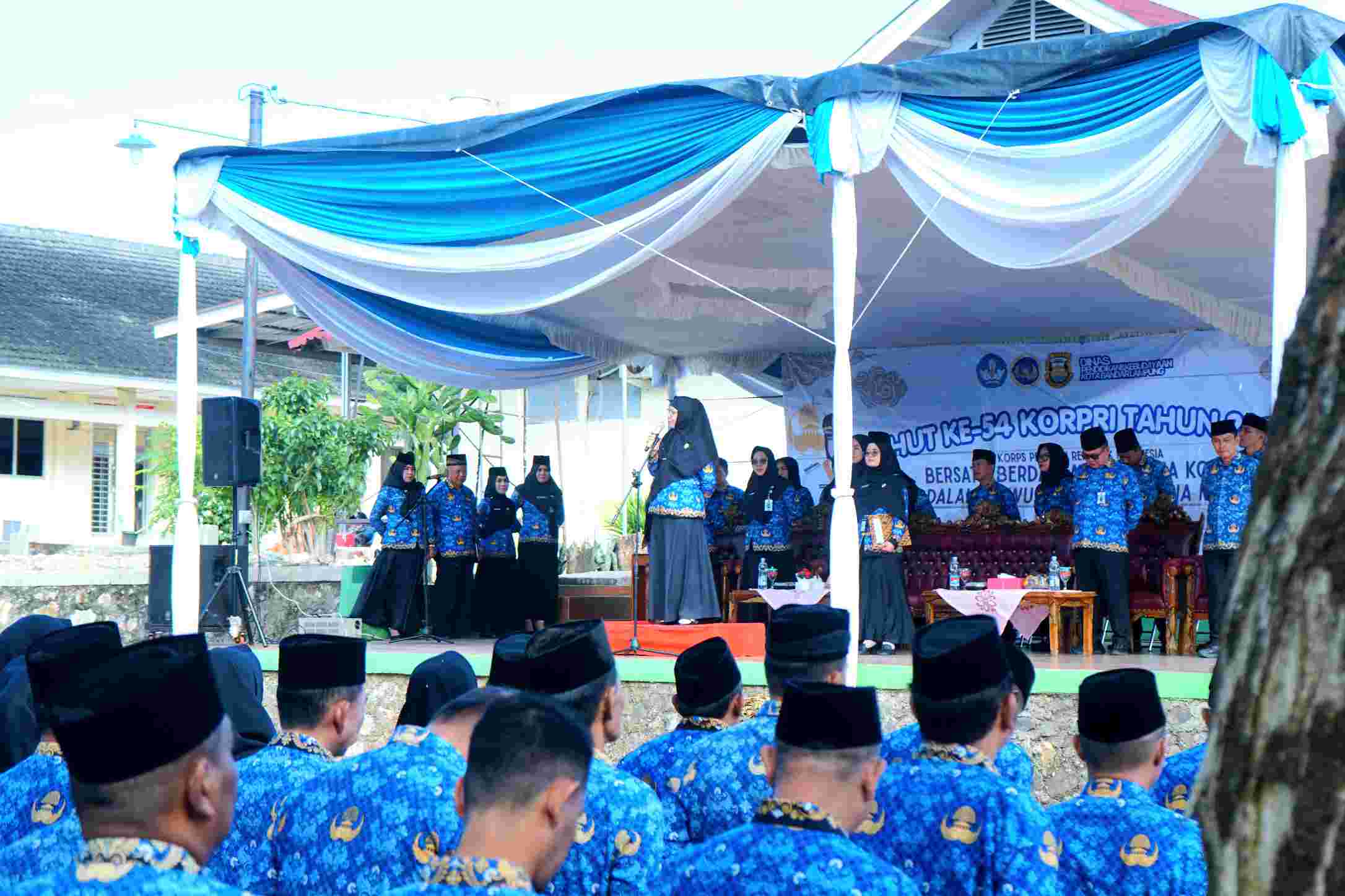 TARING.ID – Pelaksana Tugas (Plt) Kepala Dinas Pendidikan dan Kebudayaan Kota Bandar Lampung, Hj. Eka Afriana, S.Pd, menjadi pembina upacara memperingati hari ulang tahun (HUT) ke-54 Korpri, di halaman belakang dinas setempat, Senin, 1 Desember 2025.